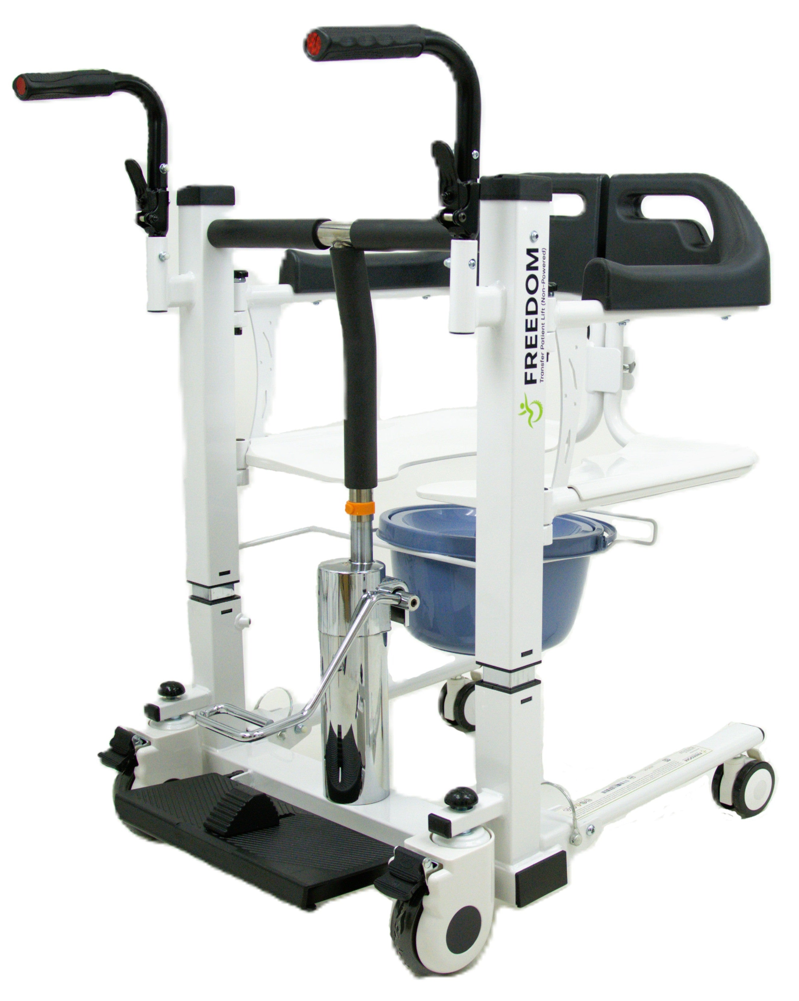 The Freedom Boost Patient Transfer Lift provides a safer alternative to traditional Hoyer or Patient Lifts. The lifts Patented Split Seat design restores one’s dignity while providing an easier to operate and comfortable patient handling device. The innovative solution features a non-powered hydraulic pump which raises and lowers the lift, combined with a split seat design to allow caregivers and family members to safely move loved ones from place to place. In a matter of minutes, you can go from bed to bathroom, kitchen to living room just about anywhere.